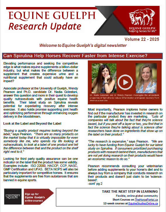 Equine Guelph prides itself in presenting this complicated scientific content in easy-to-understand communications for the industry – and what the findings mean in practical terms for your horse!